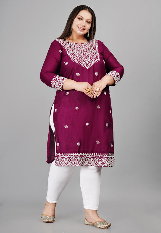 Trendy Plus size Purple Embroidery Kurti