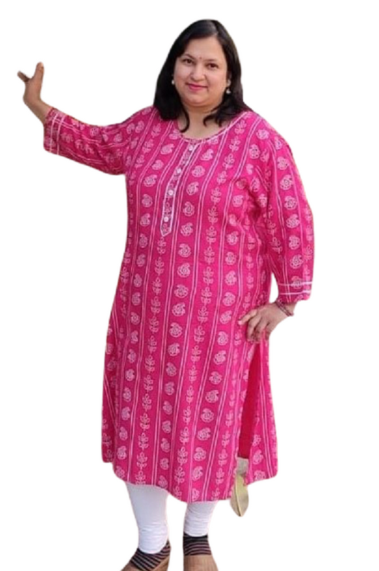 Plus Size Pink Printed Kurti with dori